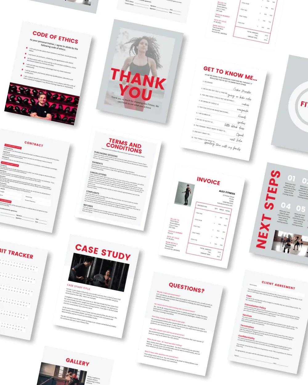 Create professional client materials, onboarding forms, workout templates, and progress documents that make your coaching look premium.