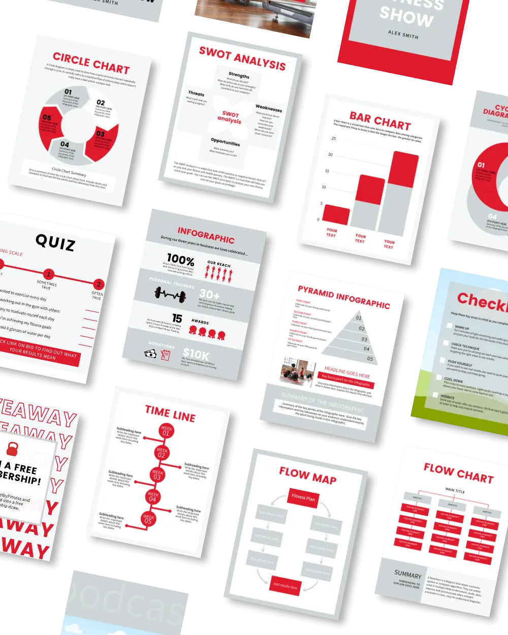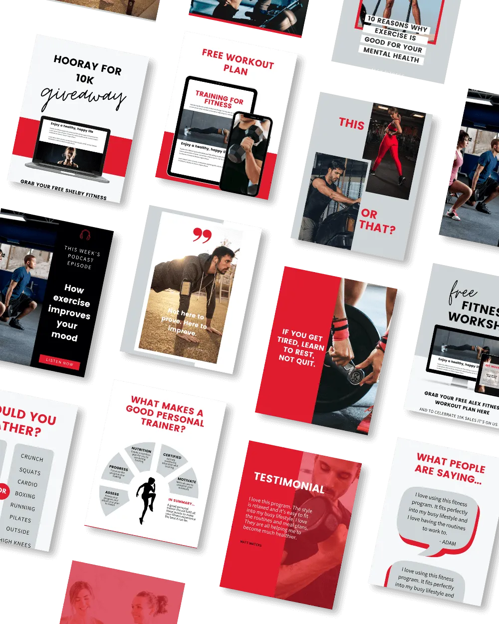Perfect for showcasing workout tips, motivational talks, or podcast episodes, these templates save time and eliminate the need for expensive designers, helping you captivate your audience and grow your following.